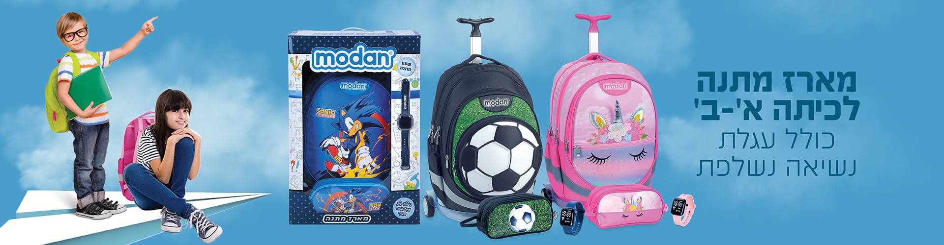 מודן מייצרת מגוון רחב של תיקי בית-ספר, שהידוע בהם הוא התיק האורטופדי, עליו נרשמו מספר רב של פטנטים ייחודיים.